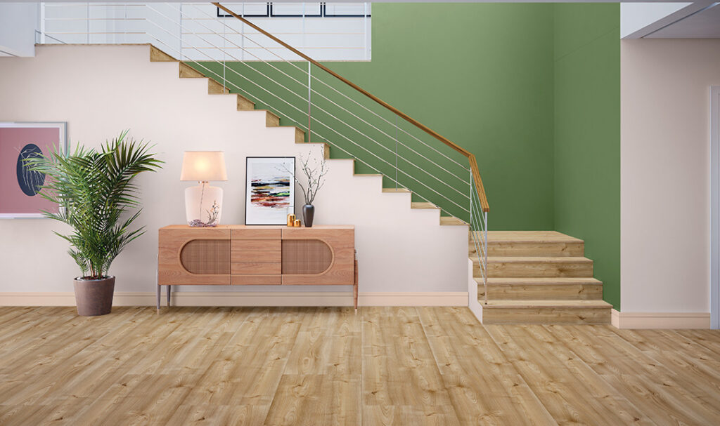 Dentro da Linha Tecno, temos opções de perfis: produtos que fazem a transição entre ambientes. O frontal de escada funciona como acabamento para os degraus, trazendo mais harmonia à transição entre escada e piso. O produto conta com diferentes opções de tonalidades, facilitando a combinação com os pisos Eucafloor.