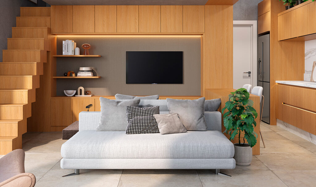 A versatilidade desse padrão em combinar com diversos tipos de decoração, espaços, tonalidades e acabamentos também é um diferencial incrível. Apesar do tom aconchegante e sereno, o Carvalho Brasileiro se equilibra entre o natural e o moderno. Em decorações em que a ideia é trazer um toque de sustentabilidade e bem-estar, ele pode combinar bem com tons mais claros e plantas, permitindo a sensação de conexão com a natureza.