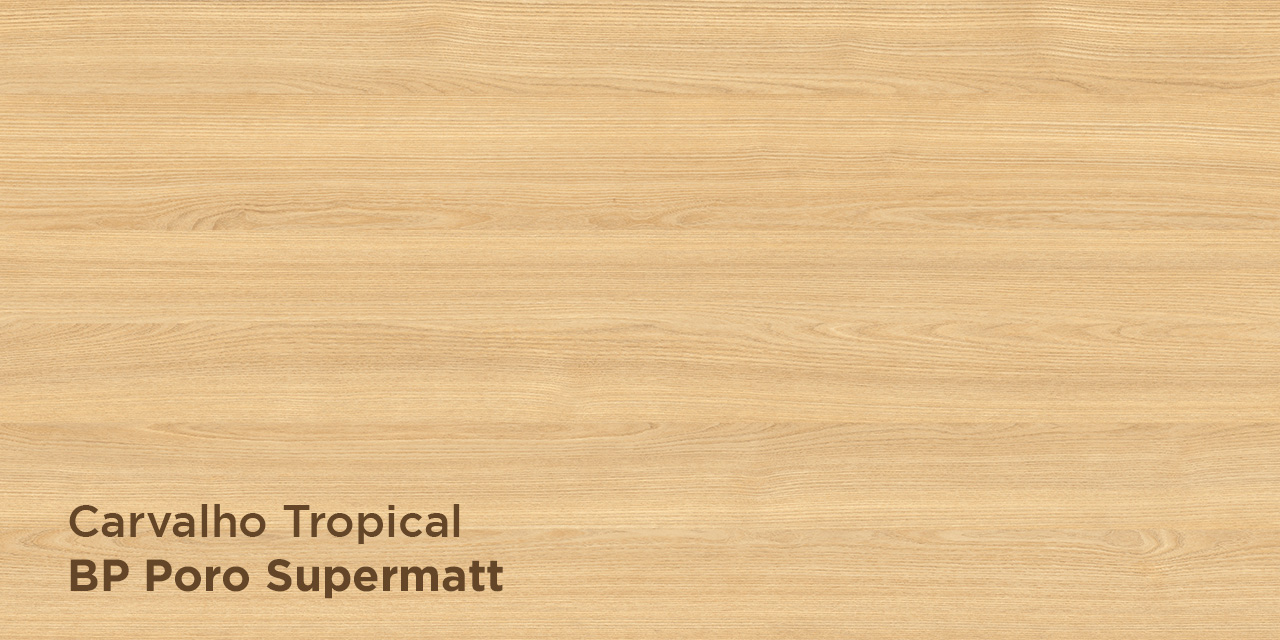 Os veios naturais discretos e uniformes rementem à madeira nativa, estabelecendo uma conexão entre nós e a essência de nossa brasilidade. A beleza dele é destacada devido ao acabamento Poro Supermatt, que permite uma experiência sensorial em que é possível sentir ao toque dos dedos a textura real das madeiras.