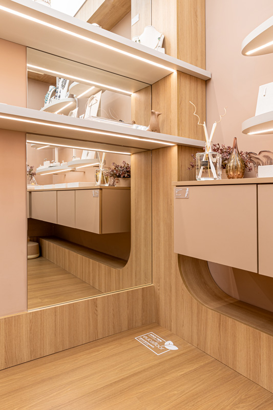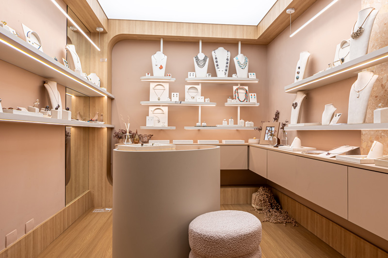 Com um singelo espaço de 6,5 m², a designer Priscila Mileke trouxe o projeto da Joalheria Autoral, em um ambiente que celebra a exclusividade de cada peça com delicadeza e criatividade.