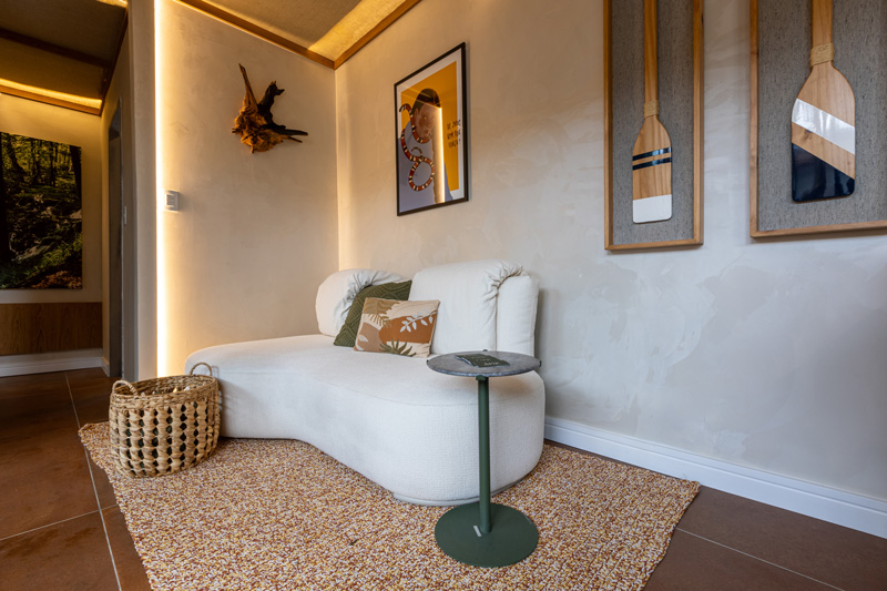 No Quarto Tekoá, idealizado pelos profissionais Diego Miranda Leite e Zeh Pantarolli, que fazem parte do Estúdio Pantarolli Miranda, a ideia era criar um espaço sensorial equilibrando ancestralidade e inovação, que remete às belezas e particularidades da floresta Amazônica.