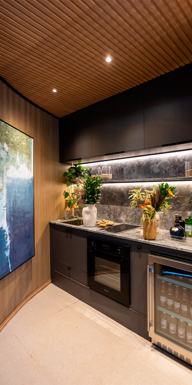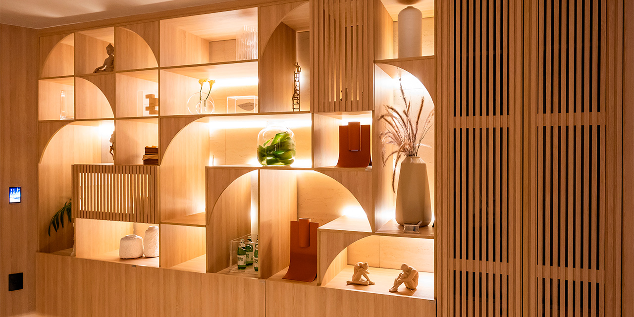 O Ripado em Barras Eucatex no tom Freijó Brasil, com sua tonalidade dourada, suave e aconchegante, foi outro protagonista desse ambiente, refletindo harmonia e bem-estar.
