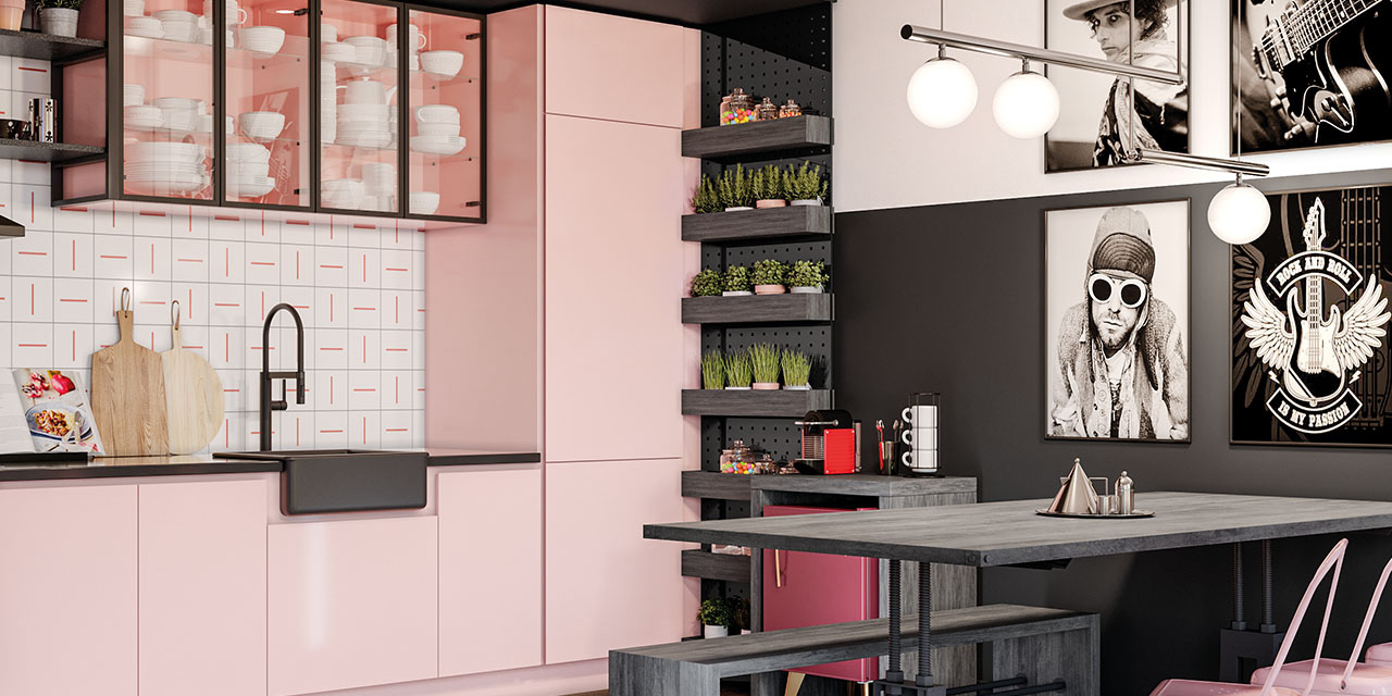 Utilizado de um jeito diferente, temos o padrão Preto. Nessa cozinha inovadora e moderna, a chapa perfurada está aplicada em um painel com prateleiras para deixar em exposição vasos de plantas que remetem a um jardim vertical, dando um toque da natureza dentro de casa.