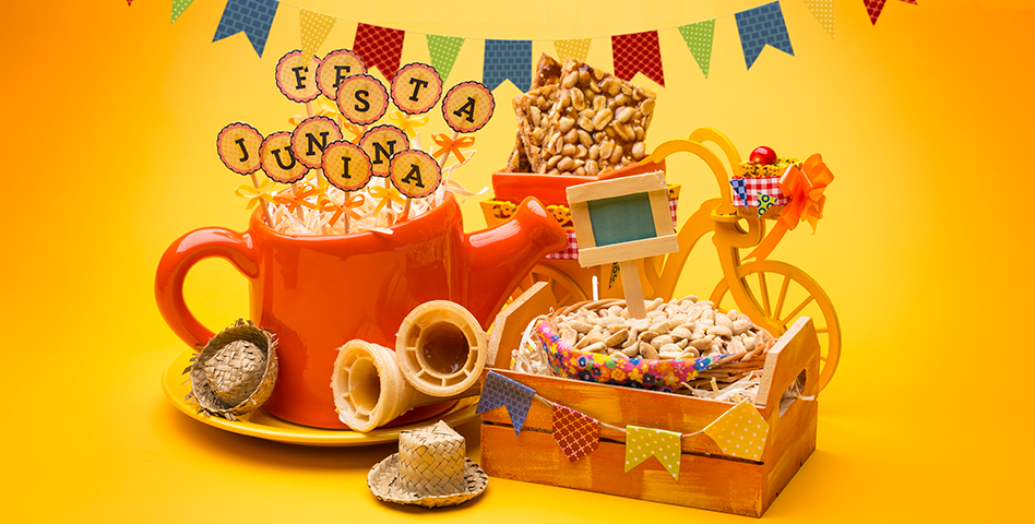Bandeirinhas nunca podem faltar, pois são um clássico dos festejos juninos. Elas podem estar no teto, presas por barbantes, ao redor das mesas, nas portas da casa, onde sua imaginação permitir! Itens temáticos, como cestas com espigas de milho, chapéu de palha e fitas coloridas compõem o cenário. Outra dica é utilizar paus de canela empilhados e amarrados com fitas coloridas, enfeitando a mesa de bebidas ou de comidas (ou ambas).
