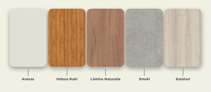 Padrões: Arenas, Kalahari, Lâmina Naturalle, Imbuia Rubi e Smoki