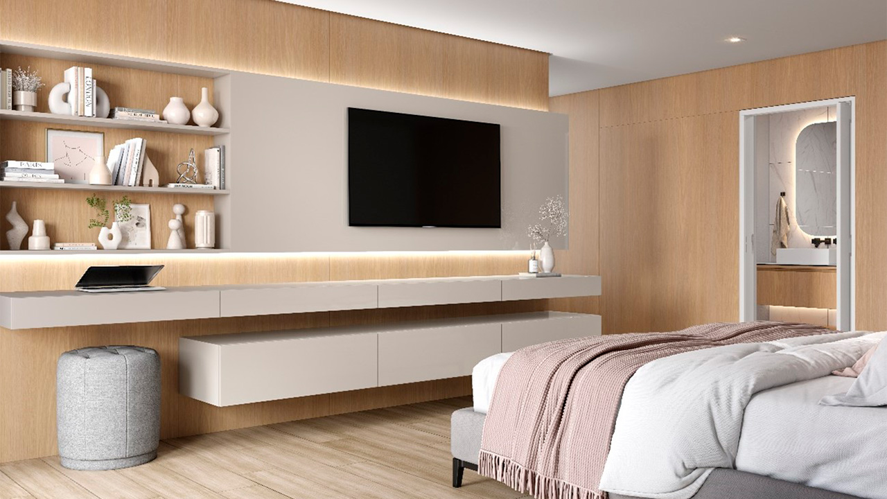 O Cinza Urbano também fica muito bem com Preto Ônix, também da Linha Lacca AD, e Noce Oro, da Linha BP Raízes, que são perfeitos para os antenados em tecnologia.
