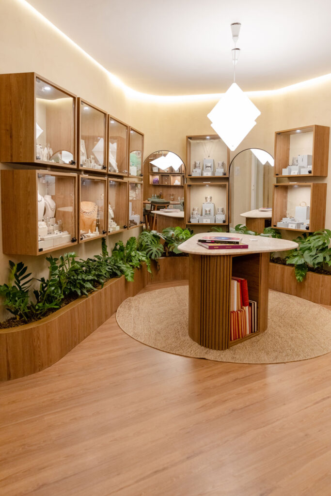 A Joalheria Conceito e Design, assinada pela designer Myla Albuquerque e pelo arquiteto Luan Freitas, foi desenvolvida pensando na facilidade para transitar, promovendo o fluxo de pessoas, com uma decoração em que as formas orgânicas ganham espaço.
