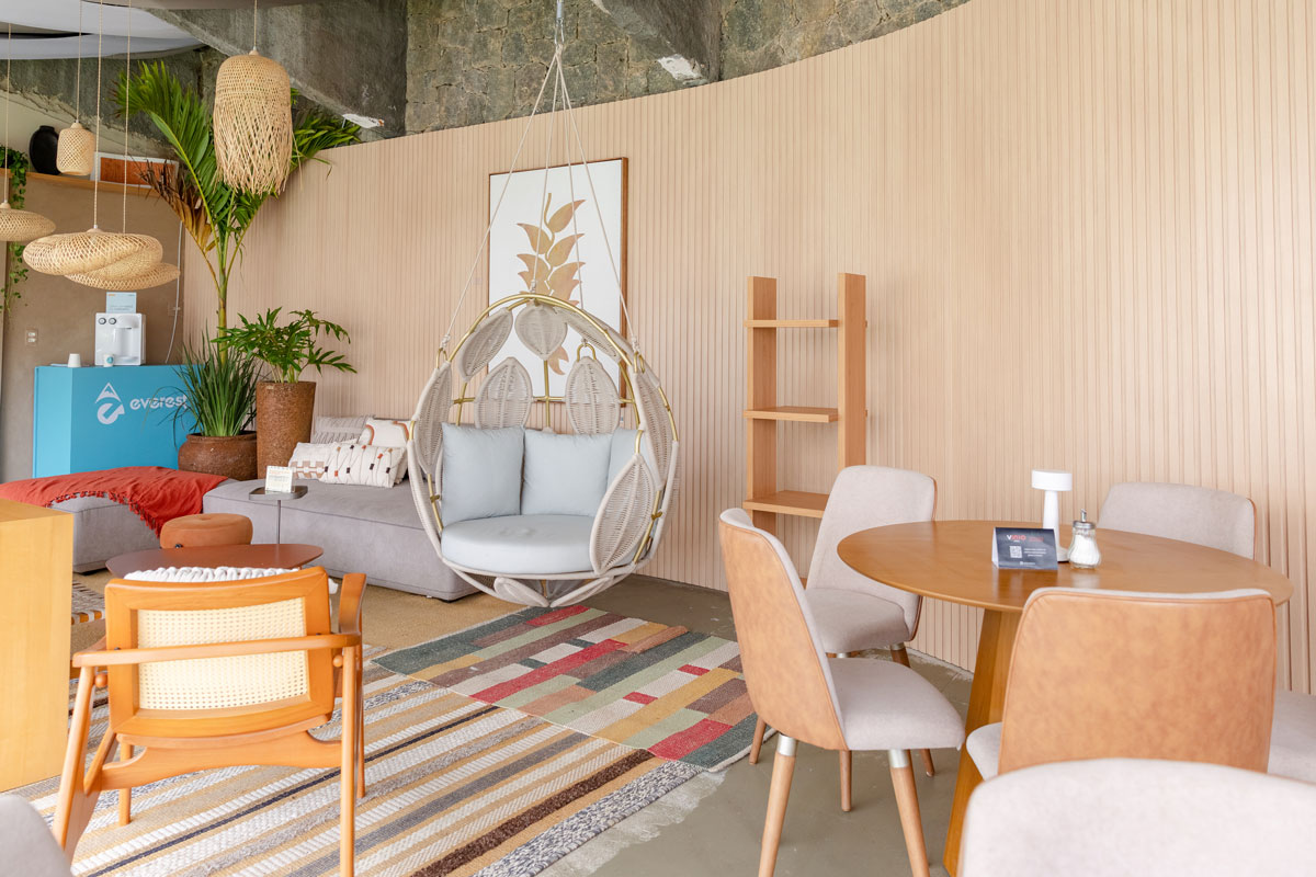 Elementos feitos em palha, barro, tecidos orgânicos e design artesanal se unem para criar uma atmosfera que exalta a nossa paisagem e cultura, com o equilíbrio entre cores suaves e intensas, em uma fusão entre autenticidade e aconchego.