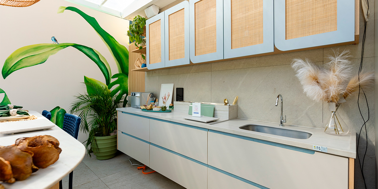 A valorização das raízes brasileiras também está presente na simplicidade da cozinha gourmet do Terraço Raízes Azuis, de Kasey de Carvalho!