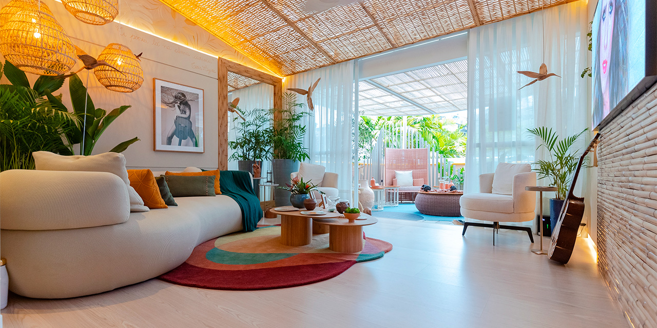 A Sala de Estar da Cantora, de Daniela Queiroz, foi criada com o intuito de homenagear uma grande amiga. Nesse espaço, ela trouxe de maneira criativa detalhes que traduzem a personalidade da homenageada.