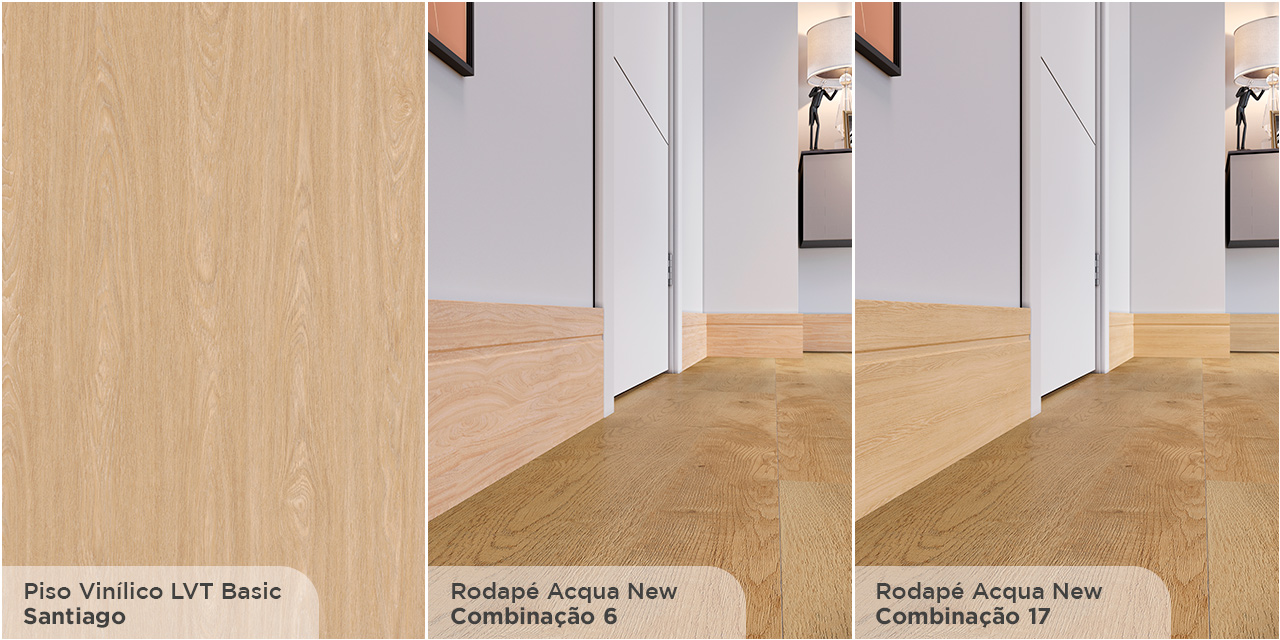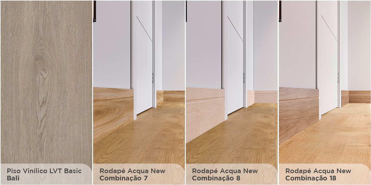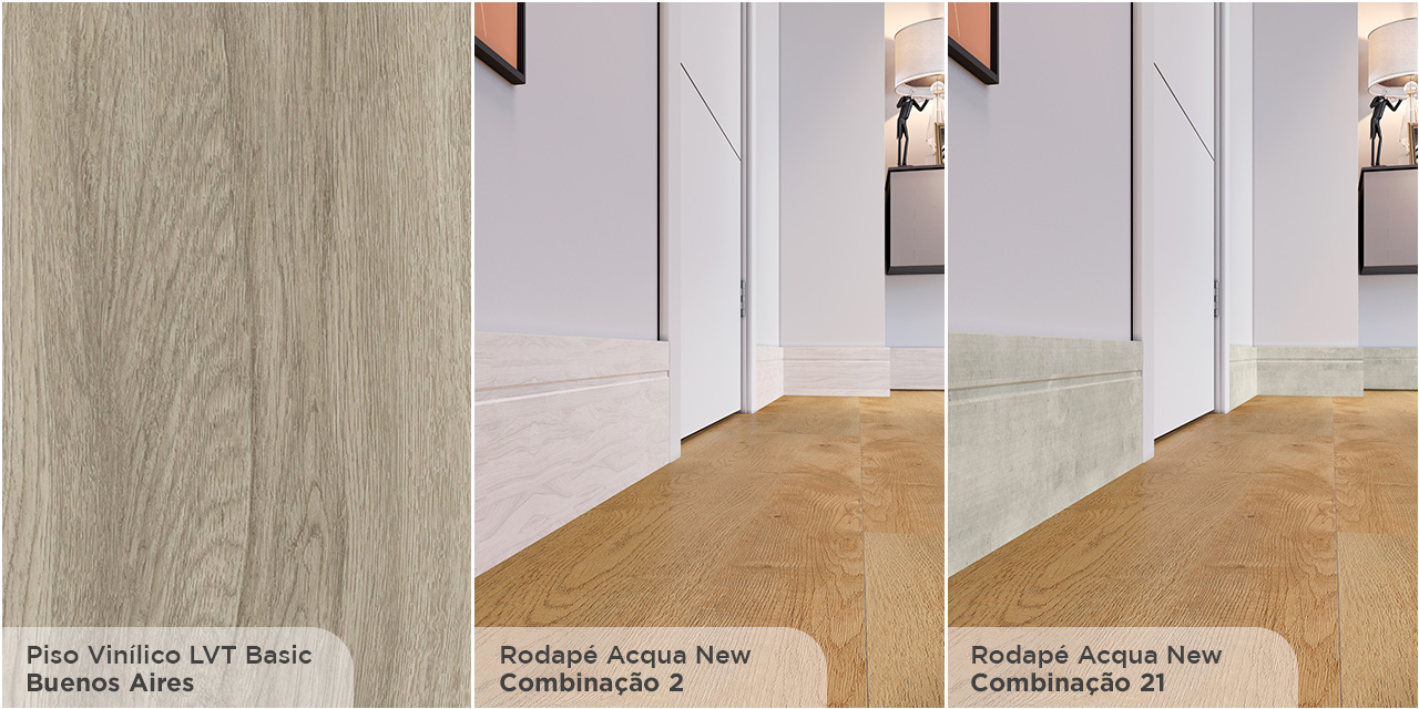 Para garantir projetos mais harmônicos e personalizados, nossos produtos são desenvolvidos com expertise para se complementarem perfeitamente. Por isso, os três novos padrões de piso vinílico, da Linha Basic, contam com rodapés Eucafloor, perfeitos para um acabamento impecável. Conheça mais detalhes a seguir!