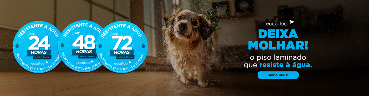 É por isso que os pisos laminados Eucafloor com tecnologia Acqua Resist são perfeitos para a sua casa em todas as estações do ano! Com essa novidade, é possível ter liberdade para aproveitar os ambientes no verão, quando a casa costuma ficar mais movimentada, as crianças aproveitam as férias escolares e o tempo livre para brincar com água e os pets entram na brincadeira. Assim, você tem menos preocupação em caso de pequenos acidentes, entradas molhadas ou respingos frequentes.