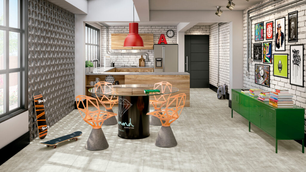O estilo contemporâneo é moderno e clean, mas também pede personalidade. Na foto acima a porta Eucadoor Frisada modelo Elegance recebeu pintura com uma tonalidade cinza chumbo, conferindo personalidade ao ambiente com estilo industrial e um charme a mais.