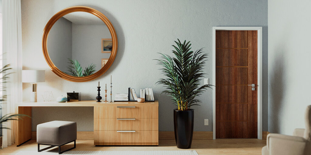 Além de separar ambientes e deixar os cômodos mais confortáveis e com privacidade, as portas são, por muitas vezes, a primeira coisa que vemos ao chegarmos em um espaço. É por isso que esse produto deve ser encarado também como um item de decoração, devendo criar sinergia com o restante do ambiente.