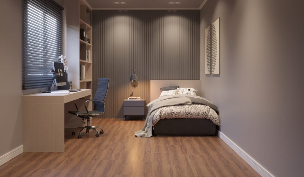 Assim como na foto de capa, aqui ele está aplicado na parede deste dormitório aconchegante e criativo, deixando o ambiente mais aquecido e confortável, perfeito para relaxar.