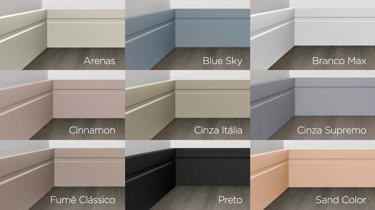 O padrão Cinza Supremo entra para o rol dos unicolores da linha de Rodapé Acqua New oferecendo mais uma opção para os profissionais da arquitetura e do design de interiores romperem a sobriedade de espaços contemporâneos e de muita elegância. Soma-se aos padrões Arenas, Blue Sky, Branco Max, Cinnamon, Cinza Itália, Fumê Clássico, Preto, Sand Color e aos amadeirados.