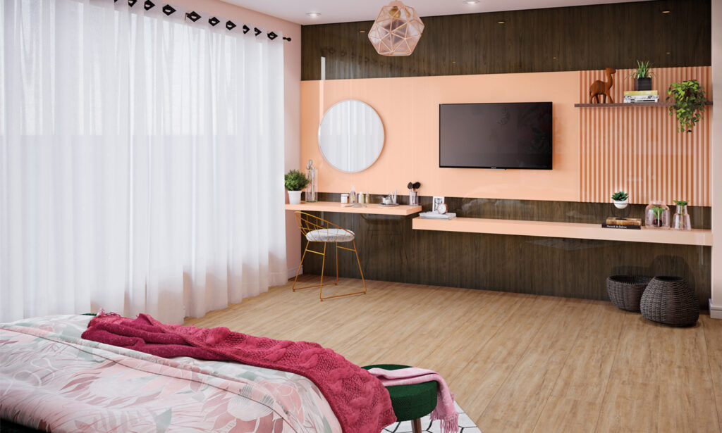Além disso, os padrões MDF carregam a versatilidade de diferentes cores e texturas que se adequam a diferentes móveis da casa. Para comprovar, chegamos com uma nova série no nosso blog: Uma cor, vários ambientes. Hoje, vamos apresentar a vocês a aplicação do padrão Sand Color.