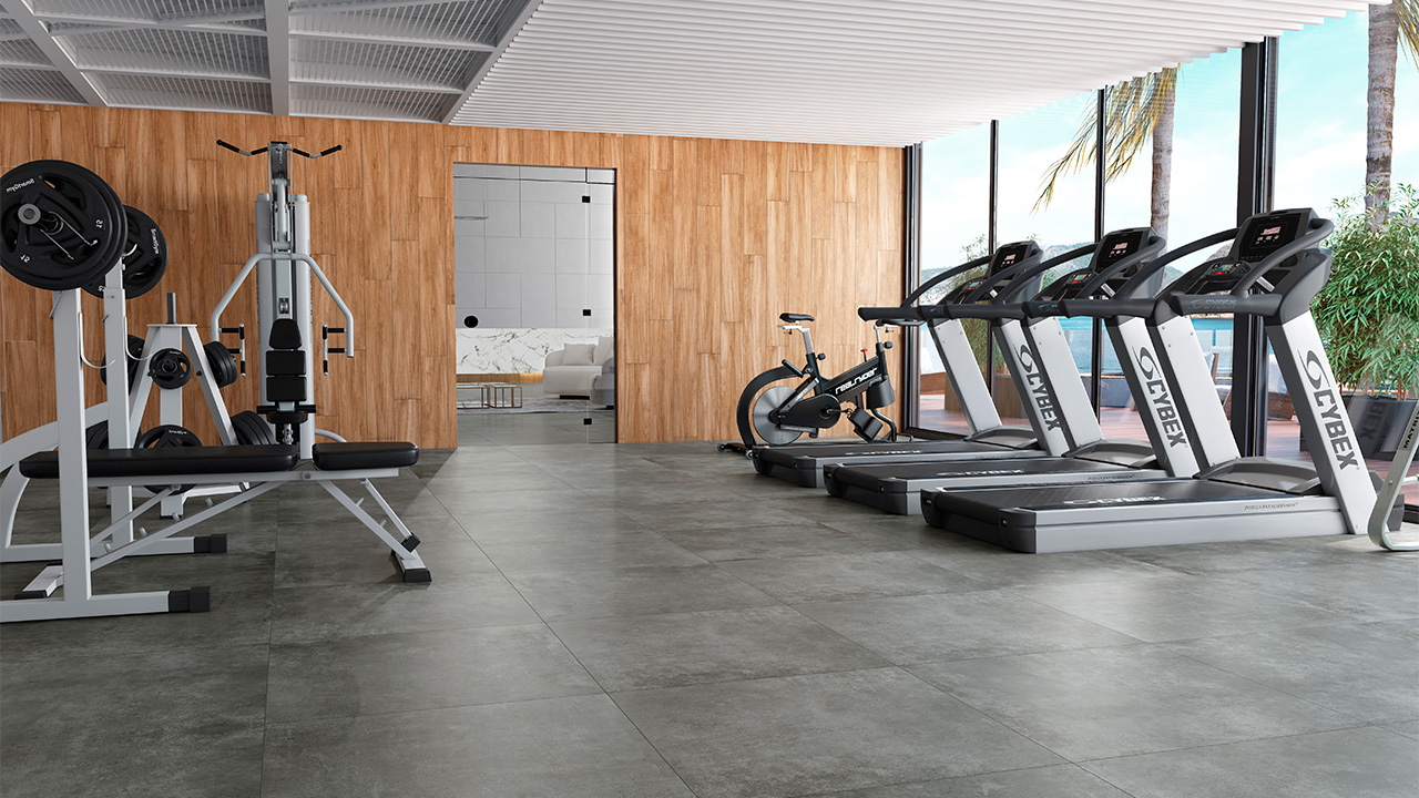 Entre as opções, estão os pisos Chicago e Houston, da Linha Basic, ambos com uma tonalidade acinzentada versátil e prática, perfeita para combinar com diferentes estilos de decoração.